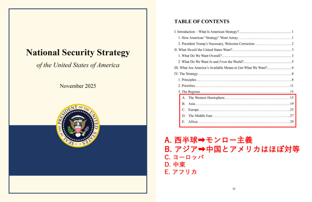 以上がNSSの概要だが、ベネズエラ攻撃はNSSの「A」の西半球制覇という考え方から出ているものだし、グリーンランド購入もこの基本方針に沿ったものだ。イランという例外があるのは、イランと敵対しているイスラエルの味方をして在米ユダヤ人という票田を確保するためだろう。