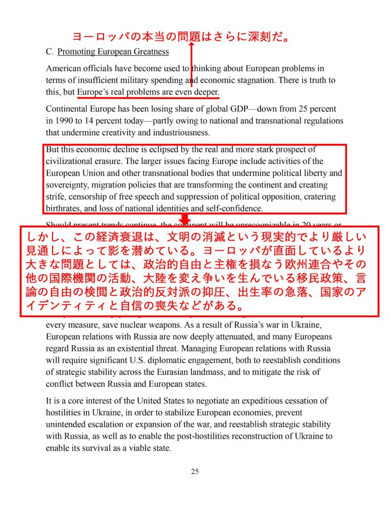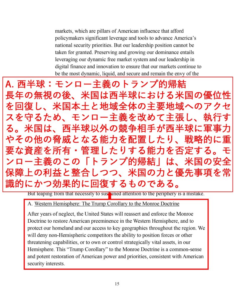 「文明の消滅」とまで言い切っているのは、NSSがドンロー主義に満ちているからで、モンロー主義は「ヨーロッパを切り捨てる」のが主眼だった。モンロー主義に倣(なら)って、「ヨーロッパ発のリベラル的価値観を捨てる」のがNSSの特徴で、トランプが今年1月7日に66の国際組織からの脱退を宣言する大統領令に署名したことが、その何よりの証しだ。国際組織の多くは、ヨーロッパ的理念から発したものだからである。国際法も関係ないとトランプはベネズエラ攻撃の後に言っている。