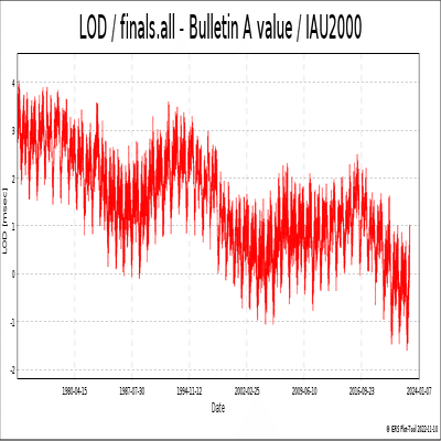 IERSによる自転速度はLOD(Length of Day)と呼ばれます。一日の長さを測っているのです。LODが短いと自転速度は速くなります。