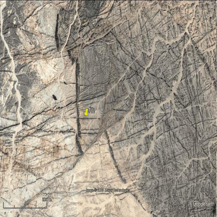 これは中国奥地の砂漠地帯にある地表のパターンですが、真ん中あたりにある黒い筋がずれていることがわかります。地球は何度も放電を受け、膨張を繰り返してきたので、火星以上に複雑な地形が出来上がってきました。しかし、膨張にはあるパターンがあるので、それを見極めるとここかしこに膨張を認めることが出来ます。