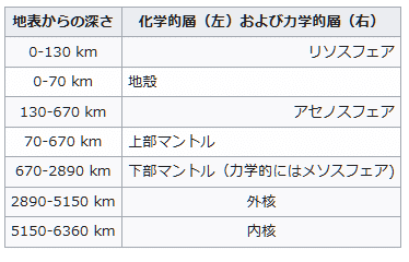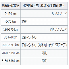 現在の地球科学では、地球内部には物質がみっしりと詰まっていると予想されています。図にしたイメージは次の通りです。