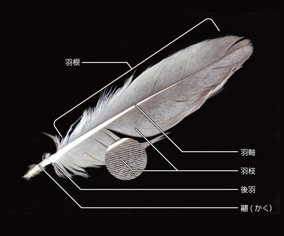 羽毛(のなかで飛翔に使用される正羽)というのは、かなり頑丈なもので、中心を通る羽軸はかんたんには曲がらない。また、羽軸の両側には羽枝が生えているが、この羽枝が近くの羽枝と噛み合ったり滑ったりすることによって、強靭でしなやかな翼を作りだしている。