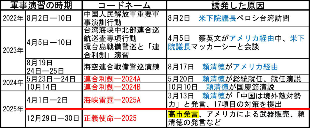 「正義使命―2025」の前までの「誘発原因」は「アメリカか頼清徳」である。