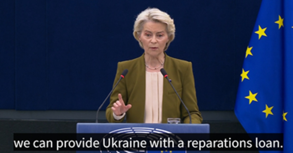 来年も戦争をつづけるとなると、こうした国や国際機関はさらなる負担を強いられる。そのために、9月10日、欧州連合(EU)のウルズラ・フォン・デア・ライエン委員長は「2025年一般教書演説」のなかで、「凍結されたロシアの資産に基づいてウクライナの戦費を賄うための新たな解決策に早急に取り組む必要がある」とのべた。そのうえで、「ロシア資産に関連する現金残高を使えば、ウクライナに賠償ローン(reparation loan)を提供することができる」との考えを示した(下の写真を参照)。