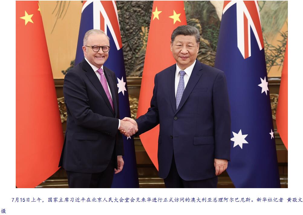 図表3:2025年7月15日、オーストラリア首相と握手する習近平