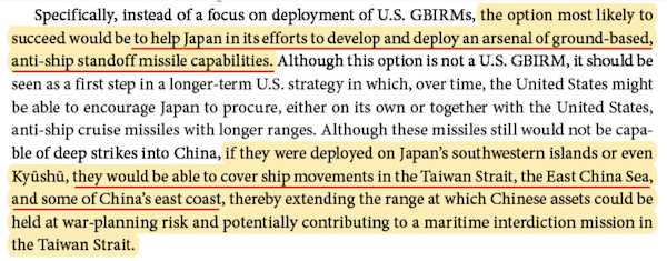 RANDコーポレーションの報告書が作成された当時、アメリカは日本が掲げる専守防衛の建前、そして憲法第9条の制約を尊重していた。そこでASCM(地上配備の対艦巡航ミサイル)の開発や配備で日本に協力するという形にするとしていたのだが、2022年10月になると「日本政府が、米国製の巡航ミサイル『トマホーク』の購入を米政府に打診している」と報道された。