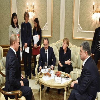 日本のマスコミは、ミンスク合意についても触れない。今回のトランプの和平プロセスは、22年の侵攻からの戦争を停戦させる動きだが、22年のロシアの侵攻は14年の紛争内戦からの延長であり、その決壊と爆発だった点は言うまでもない。14年からの紛争内戦を停戦させる交渉と協定こそ、ミンスク合意と呼ばれる和平プロセスで、14年9月に第1次、15年2月に第2次の合意文書が調印されている。ミンスク合意の立役者はEU全体の指導者でもあったドイツ首相のメルケルで、関係首脳が徹夜する協議を指揮して苦心の合意を纏めた経緯があった。ミンスク合意の肝は、東部2州にロシア系住民の自治権を認める恒久法を制定することで、ドンバス2州をクリミア州と同じく自治共和国とする憲法改正を実施することだった。だが、15年に協定が成立したにもかかわらず、ウクライナは協定を遵守せず、東部ではロシア系勢力への攻撃や住民の被害が続き、業を煮やしたプーチンが21年から履行を求めて軍事圧力に出る。